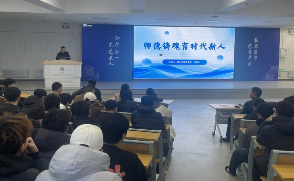 2025年11月18日,体育系特邀唐山市凤凰中学校长许海滨,开展题为“师德铸魂育时代新人”的名师示范课。本次示范课由体育系副主任尹海主持,200 余名师生代表现场观摩学习,共同体验教学实践、领悟育人方法。