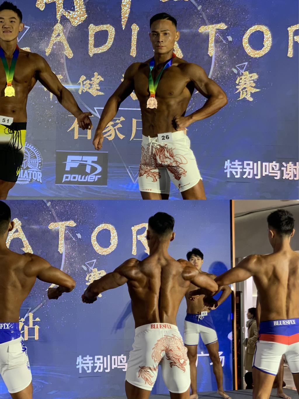 近日,2025 年 12 月 14 日石家庄角斗士健美城市新人赛圆满落幕。我校体育系 2022 级社会体育管理与指导专业学生孙子豪首次登上该赛事舞台,便凭借扎实的专业功底、出色的竞技状态和完美的肌肉线条,在多个组别中强势突围,一举斩获 6 项冠军、3 项亚军、3个季军、1 项第六名的优异成绩,成为赛事焦点。