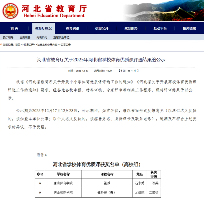 近日,随着河北省高校体育优质课评比结果正式公布,我校教师凭借扎实的专业功底和匠心独运的教学设计,一举揽获两项重量级奖项,为学校体育教育教学工作注入强劲动能。