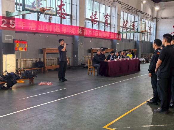 在全场热烈的期待中,系党总支书记蔡建丰为揭幕战开球,随着篮球高高抛起,现场瞬间爆发出阵阵欢呼,2025年唐山师范学院体育系“迎新杯”篮球赛正式拉开战幕。